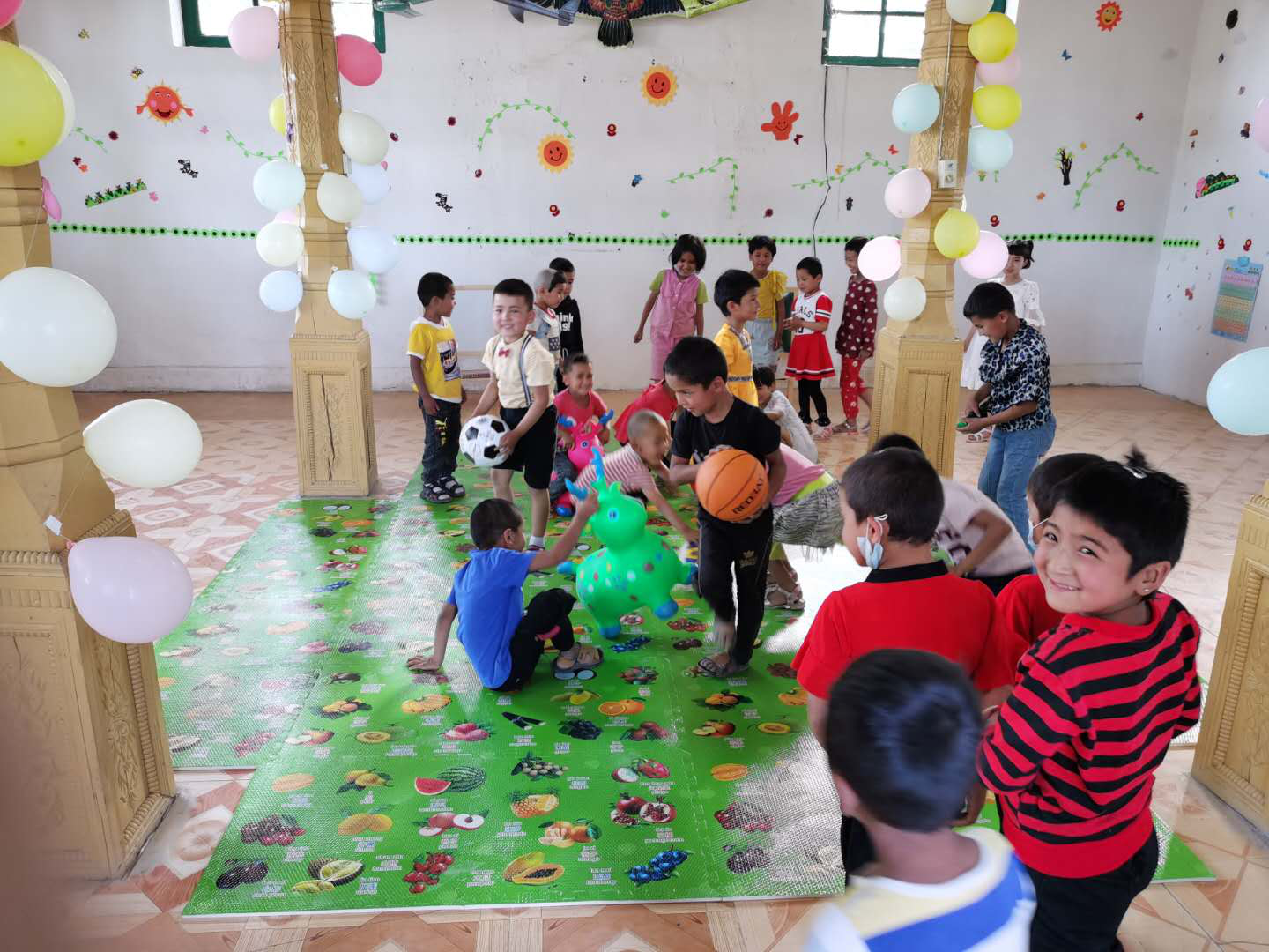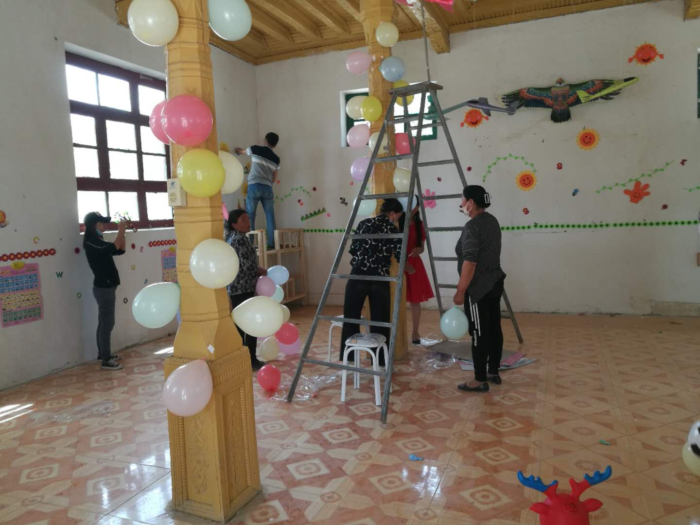 5月底,自治区博物馆了解到也克力村正在筹建“儿童之家”,立即行动起来,纷纷策划起帮扶计划。5月31日一到阿克苏市,结亲干部就忙着采购玩具、体育用品和装饰挂画等。到了村上,大家放下行装就赶到儿童之家打扫卫生、装扮墙面。6月1日一早,结亲干部又早早赶到场地,和村民一道吹气球,安装玩具、地垫,忙得连午饭也没来得及吃。当看到孩子在“儿童之家”欣喜样子,大家脸上挂满了满意的笑容。