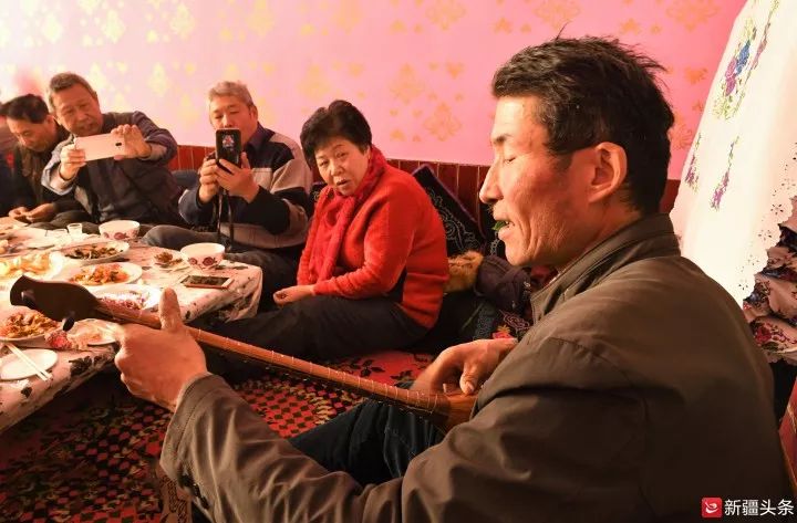 美食一网打尽后,两位民间音乐艺人边弹边唱为远道而来的游客助兴。从《可爱的一朵玫瑰花》《两只小山羊》到《空中草原那拉提》《巩乃斯河我的母亲河》,民间音乐人阿依登弹唱了一首又一首,歌声时而热情奔放,时而婉转悠长,在这温暖的小屋里,伴着歌声,达人“小乔帮主”情不自禁地跟着音乐摇摆。
