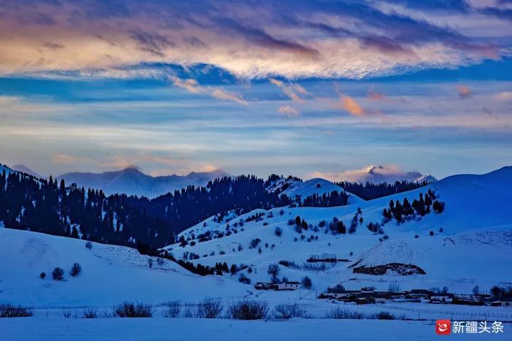 作为我国重要的畜牧业生产基地,伊犁河谷分布着众多牧场。下雪就是牧民冬季转场的命令,牧民们根据世代流传下来的习惯和经验,把草场分为春秋牧场、夏牧场和冬牧场。冬牧场便选择在避风、温暖、薪木易得的“冬窝子”,一般在环形山谷、盆地等地。