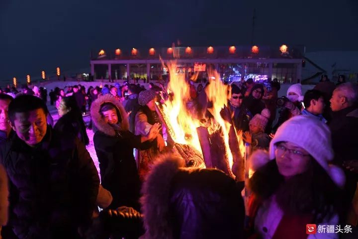 那拉提国际滑雪场举办了雪地篝火音乐晚会。图 / 王琦铭