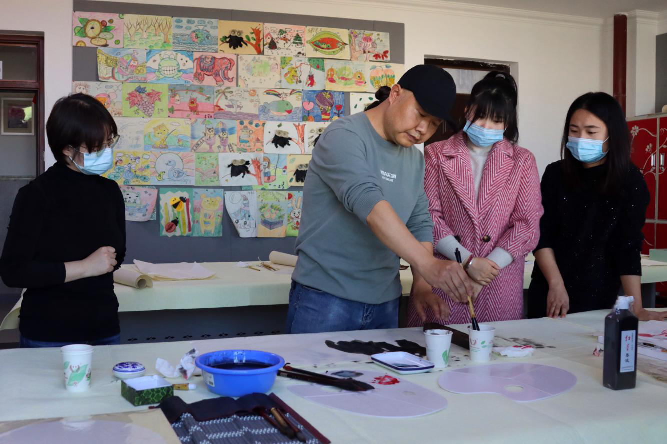 新疆画院专职画家韩志强向学员教授国画技法