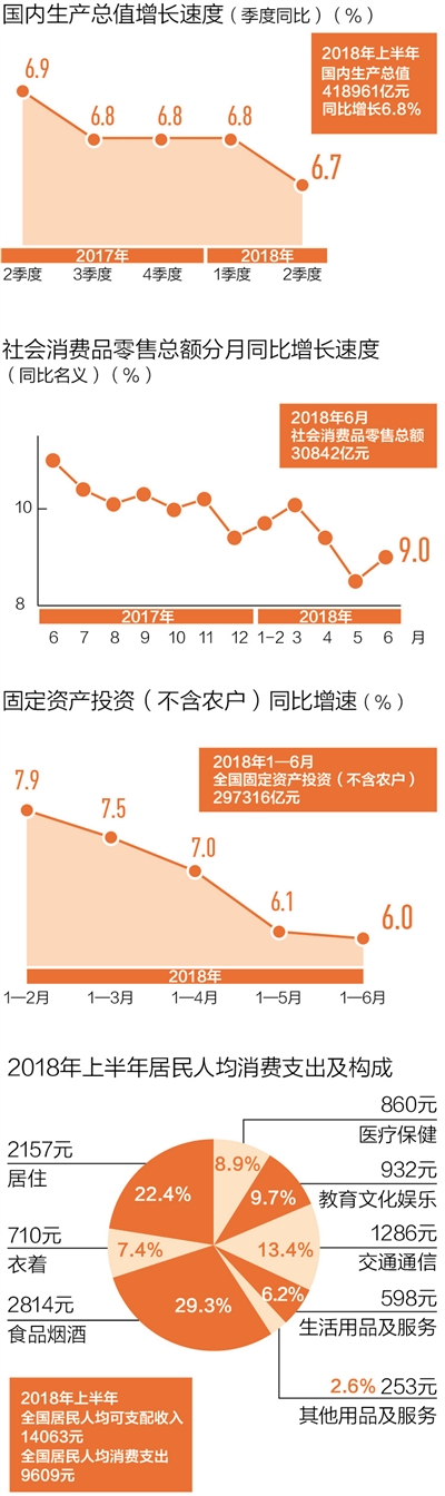 消费仍是顶梁柱。“从今年上半年主要的数据来看,经济增长的格局中,内需是决定力量,内需里面消费又是顶梁柱。从下半年来看,消费还是有条件延续平稳较快的增长态势。”毛盛勇说,消费保持较快增长有四大理由:一是消费本身是刚性增长;二是居民收入总体保持较快增长,而消费是收入的函数;三是基于我国经济发展阶段,消费结构升级的步伐只会加快;四是不断地满足人民日益增长的美好生活需要,加大了进口,丰富了供给,也会促进市场销售的活跃。